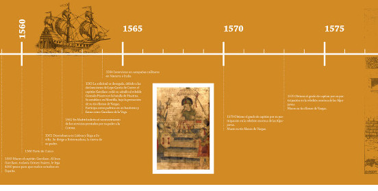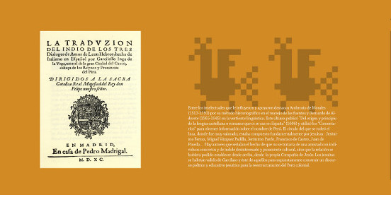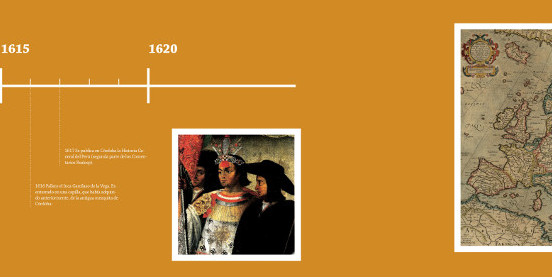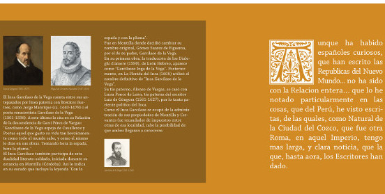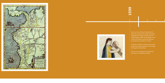 De los dos paneles, el primero recorre los hitos más importantes en la vida del Inca; el segundo panel se dedica a las obras escritas por él.