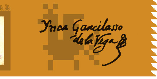 El cartel muestra el rostro difuminado del Inca Garcilaso, cuya imagen verdadera se desconoce, pues los retratos que han llegado hasta nosotros fueron realizados con bastante posterioridad a la muerte del Inca.