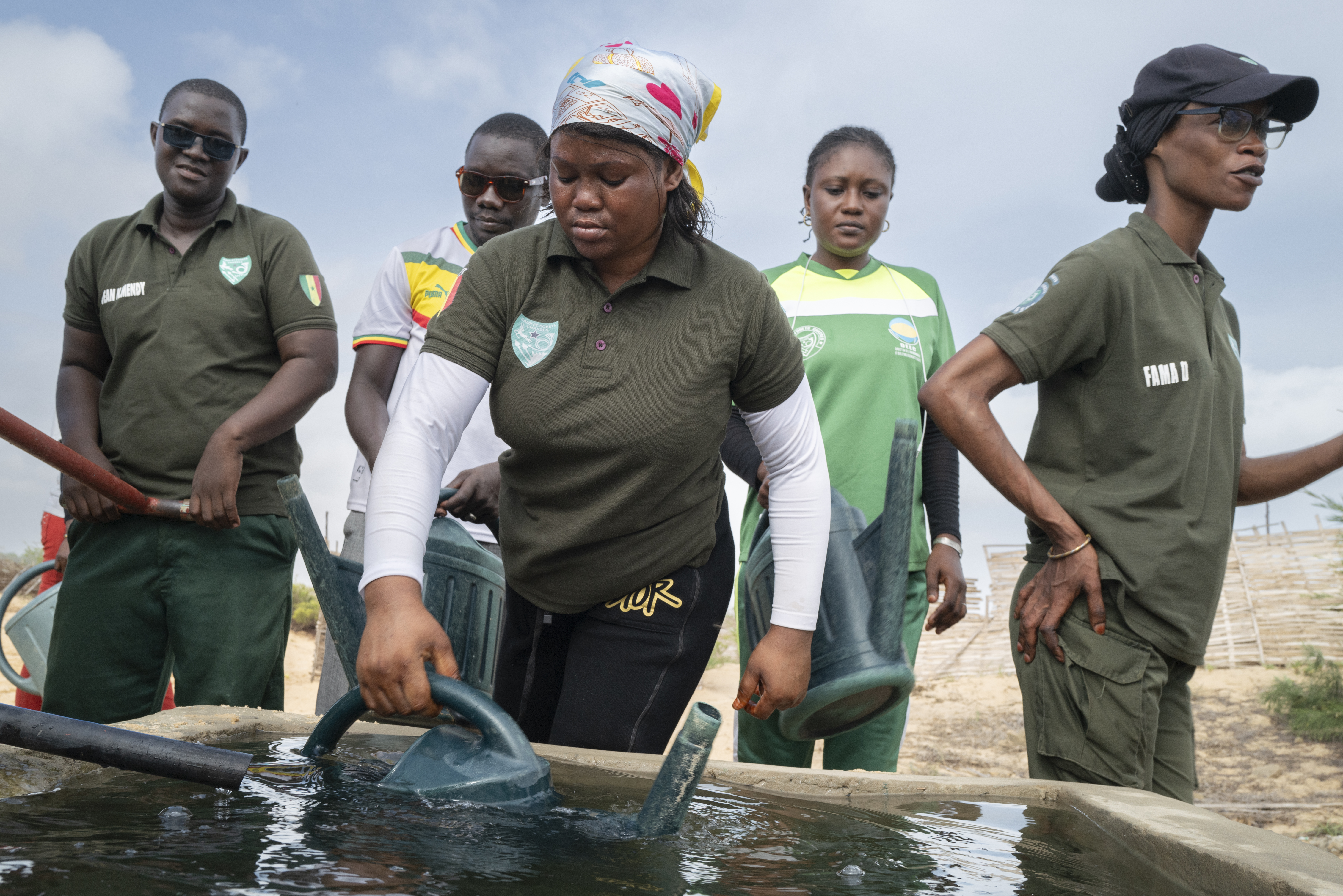 La cuadrilla, integrada por una veintena de jóvenes, se afana en la tarea bajo la atenta mirada de la capitana Seynabou Diop Fall, jefa del sector de Keur Massar de la Dirección de Aguas, Bosques, Caza y Conservación del Suelo del Ministerio de Medio Ambiente de Senegal. “Los voluntarios son fundamentales, no es solo que se han enamorado y apropiado del proyecto, sino que contamos con ellos para que sensibilicen a los demás en sus barrios”, asegura.