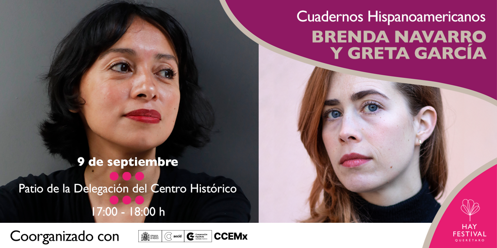Cuadernos Hispanoamericanos. Brenda Navarro y Greta García | 9 de septiembre / 17:00 - 18:00 h Patio de la Delegación del Centro Histórico