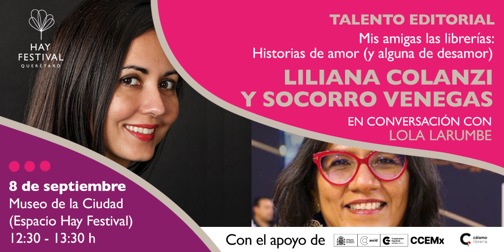 Mis amigas las librerías. Historias de amor (y alguna de desamor). Liliana Colanzi y Socorro Venegas en conversación con Lola Larumbe | 8 de septiembre / 12:30 - 13:30 h Museo de la Ciudad (Espacio Hay Festival)